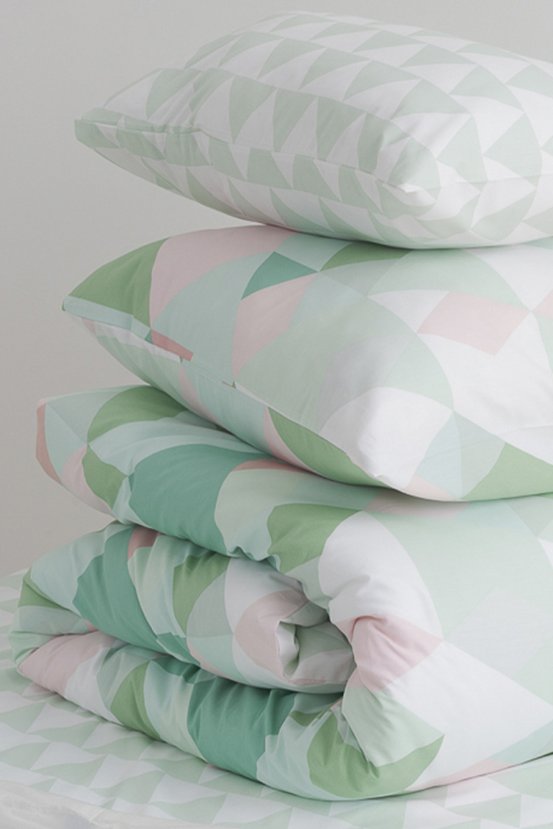 Постельное белье выполнено из сатина высокой плотности (пряжа 40х40) с пигментным окрашиванием. Ткань шелковистая, очень приятная на ощупь. Пододеяльник и наволочки сшиты из основной ткани, простынь и обратная сторона пододеяльника выполнены из ткани-компаньона.